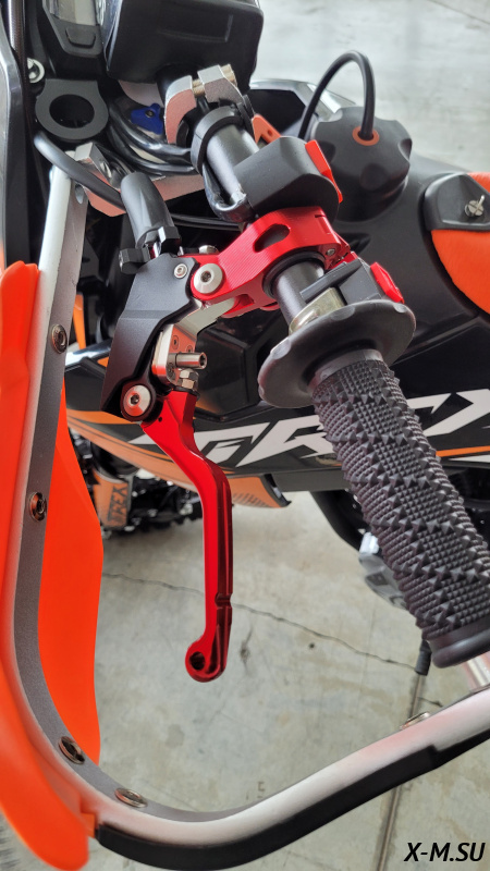 Складные рычаги: Уменьшают риск повреждения рычагов сцепления и тормоза при падениях. Это особенно полезно при активном внедорожном катании.